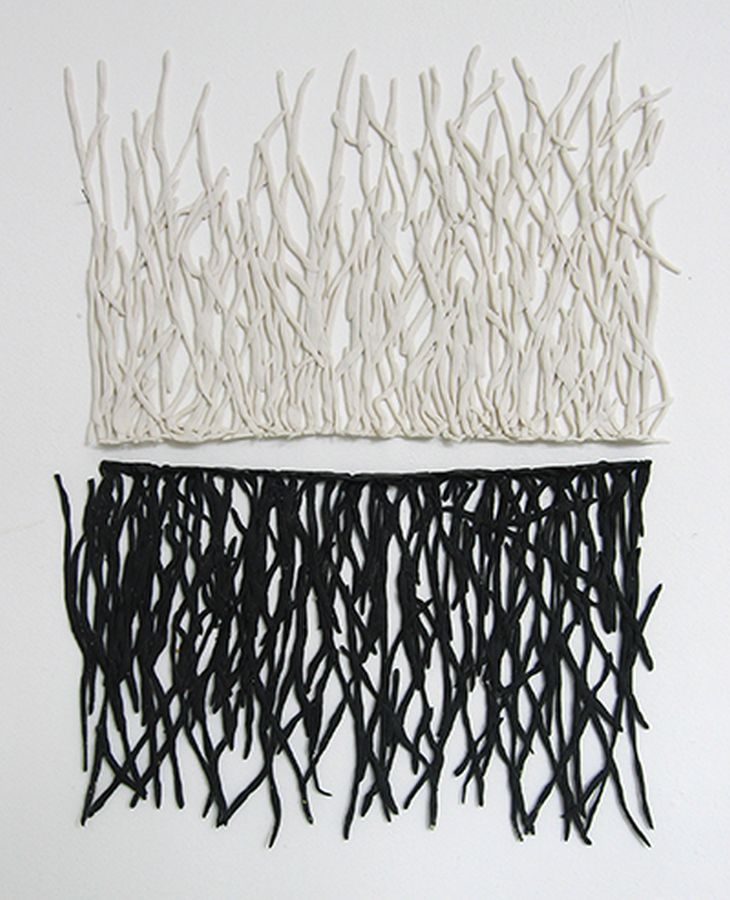 De balans tussen chaos en orde, gevoel en verstand in ragfijne structuren van zwart klei of porselein