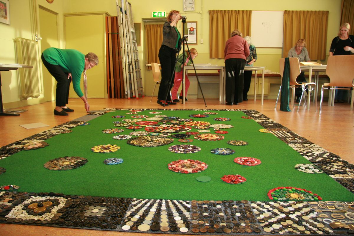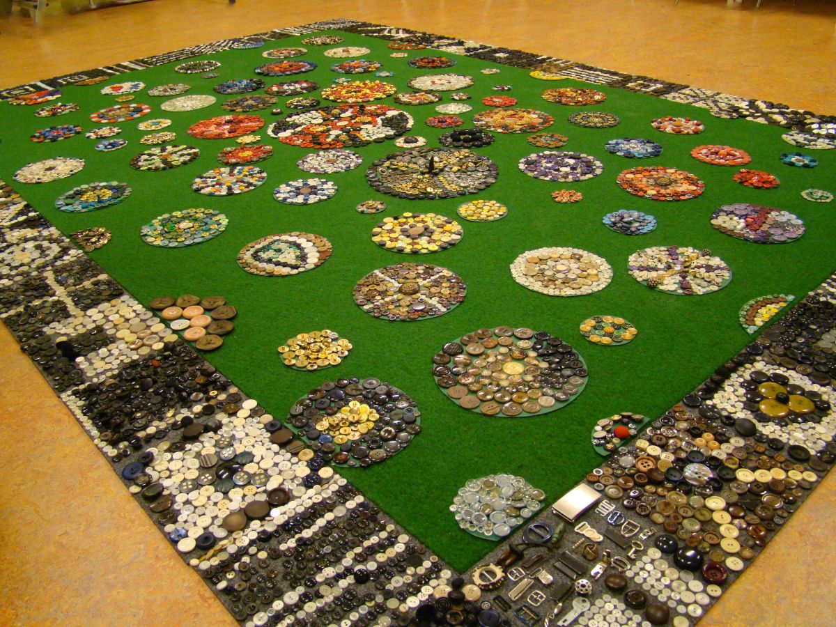 Samen met bewoners van de bloemenbuurt in Purmerend is een knopenkleed gelegd van meer dan 10.000 knopen uit de oude knopendozen van de buurtbewoners. Van het ‘bloementapijt’ is een mooie foto gemaakt en deze is afgedrukt op een vlag, de buurtvlag. In de vlag zit een transparant vak wat de mogelijkheid geeft om zelf een persoonlijke ‘buurt’ boodschap uit te dragen.